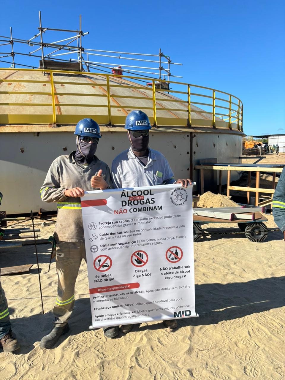Durante a ação, foram enfatizadas a importância de não dirigir ou trabalhar sob efeito de álcool e/ou drogas, a responsabilidade individual e coletiva e o papel de cada colaborador na prevenção de acidentes. A MID acredita que promover escolhas conscientes em suas obras é uma forma concreta de cuidar das pessoas e fortalecer um ambiente de trabalho cada vez mais seguro, saudável e responsável para todos.